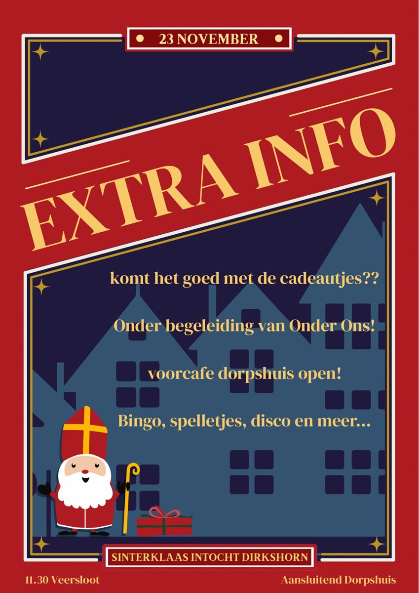 De Sint gaat daarna naar het Dorpshuis de Kastanjeboom om de kinderen de mogelijkheid te geven om bij hem op schoot te zitten en met hem te praten. Ook kunnen de kinderen spelletjes doen in de zaal.