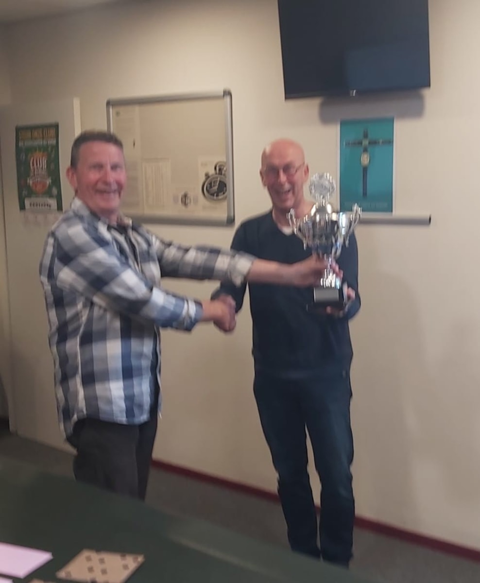 Wedstrijdleider Arie Dick Muntjewerf had voor alle finalisten een waardebon en voor kampioen Bert de wisseltrofee en het traditionele boeket.