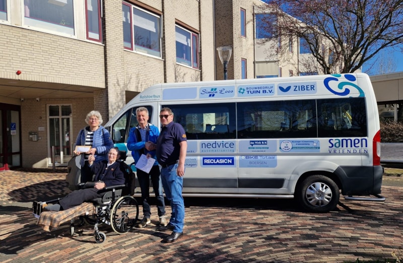Jan Brondsema, (op de foto uiterst rechts) werkzaam op booreiland Prospector 1, heeft samen met zijn collega’s een hartverwarmende donatie van € 1.580,- overhandigd aan Samen Vrienden.