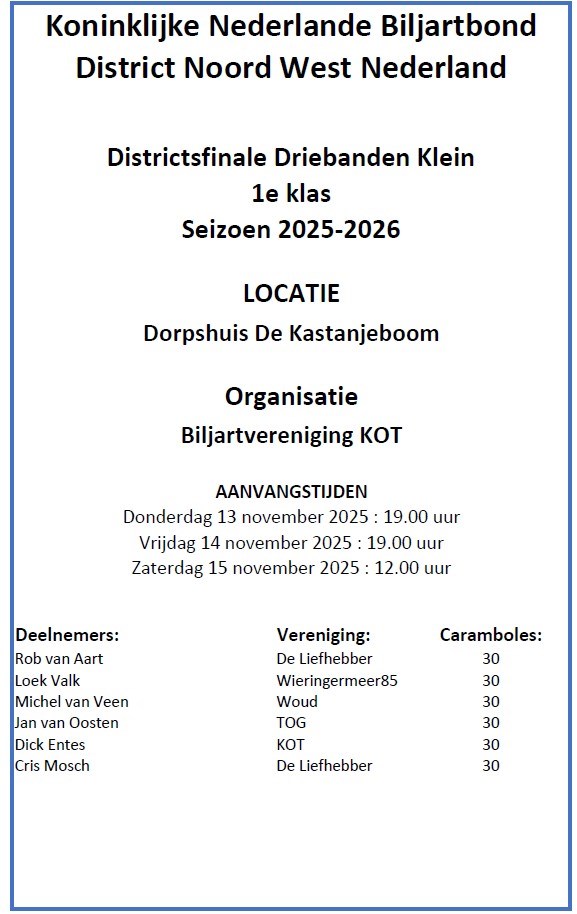 districtsfinale driebanden 1e klasse klein